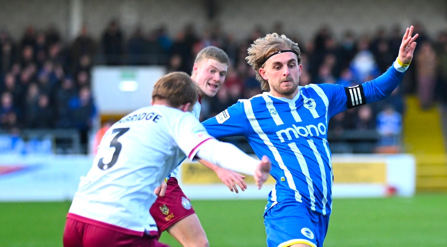That set the tone for an excellent first 45 minutes of football, particularly from the hosts, with the desire and determination to be first to loose balls clear, and the pressure on the Shields back line every time they had to clear their lines being significant.