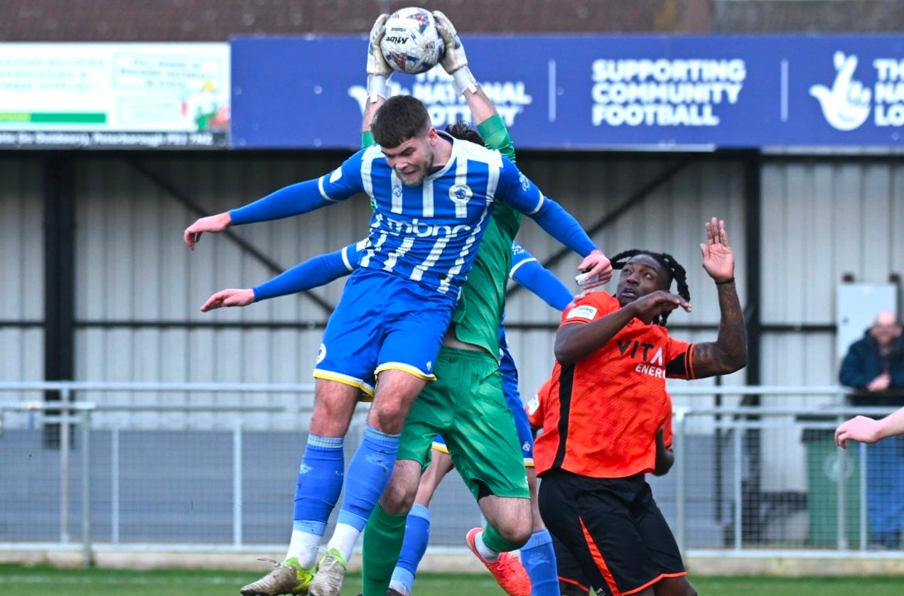 This isn’t centred on just George Murray-Jones in the Chester goal, either, but his clanger against Peterborough set the tone, and changed the scoreline which meant that the Blues were chasing the game and changing shape. Against the backdrop of other errors, most significantly to hand Chorley a leveller in injury time last weekend, Murray-Jones has come under plenty of scrutiny.